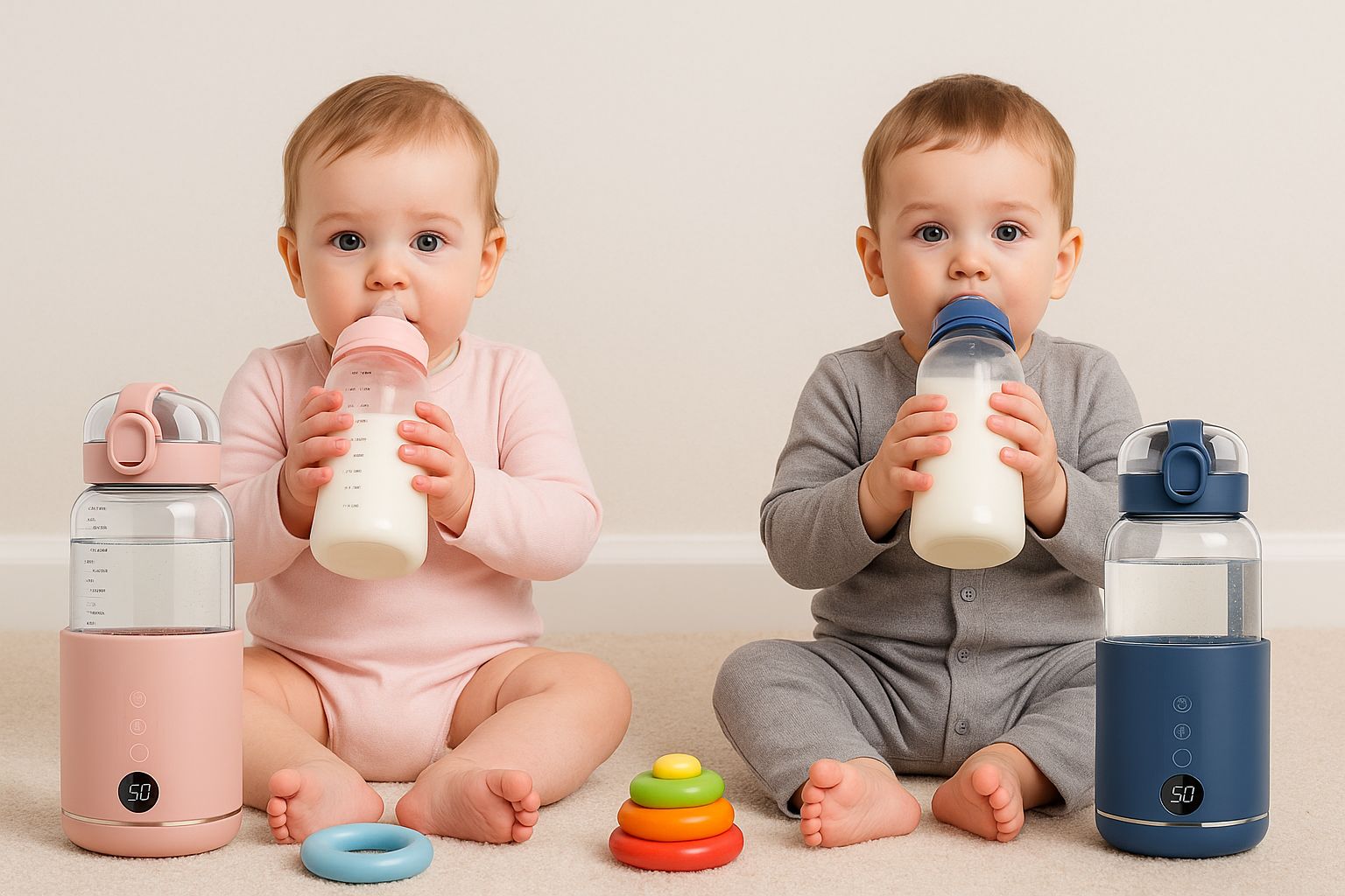 Plus besoin de courir après une prise ou de chercher de l’eau chaude — un simple bouton suffit. Rechargeable par USB, sans BPA et facile à utiliser, il répond aux besoins des parents soucieux du bien-être de leur bébé, sans faire de compromis sur le style.